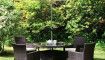 - Includes 1 large dining table and 4 dining chairs and middle stand umbrella.